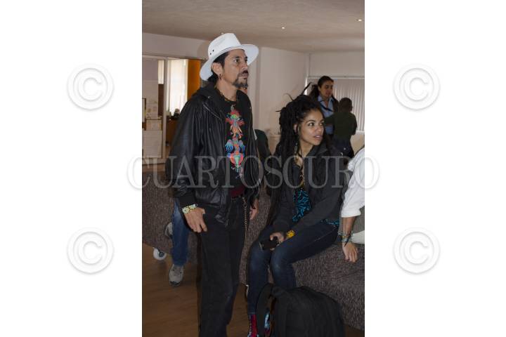 MÉXICO, D.F., 08NOVIEMBRE2012.- Roco Pachukote y Moyenei Valdés quienes forman el proyecto Sonidero Mestizo, durante la coferencia de prensa del Consejo Regional Wixarika, en la cual exigieron se prohíba cualquier actividad minera y se reconozcan los derechos de su pueblo y de los habitantes de Wirikuta, en el Centro de Derechos Humanos Miguel Agustín Pro Juárez. FOTO: SANDRA PÉREZ /CUARTOSCURO.COM