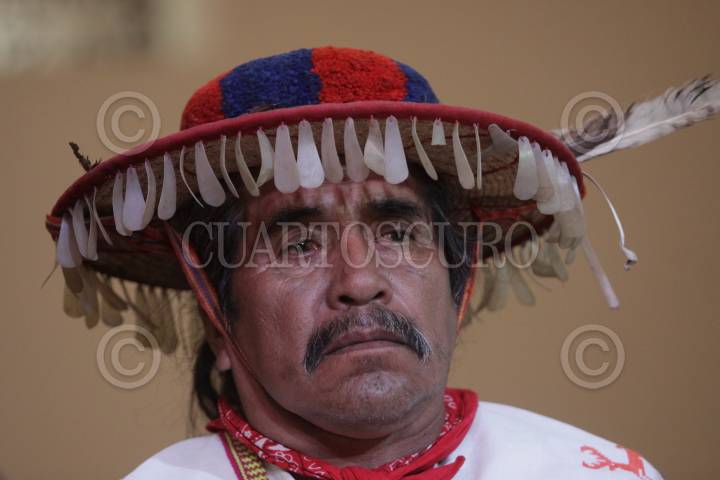 MÉXICO, D.F., 17DICIEMBRE2014.- Ubaldo Valdez, Consejo Regional Wixárika por la defensa de Wirikuta, denunció la violación de los derechos de los pueblos Náyeri y Wixárica en la construcción de la presa Las Cruces y las mineras en Wirikuta. Denuncian que la Conagua y la Comisión Federal de Electricidad están haciendo consultas a modo para validar el proyecto hidroeléctrico de la Cruces y lla presa de La Maroma que forman parte de la infraestructura de los proyectos mineros en Wirikuta, las comunidades son objetos de presión y manipulación de la información, condicionando apoyos federales y estatales e incitando a la división y la confrontación social. por ejemplo en el caso de la presa La Maroma, la Conagua ha mentido al afirmar que este proyecto proyecto hidráulico se ubica a varios kilómetros de nuestros sitios sagrados, siendo que el embalse en realidad se encontraría totalmente dentro del Área Natural Protegida de Wirikuta. FOTO: MOISÉS PABLO /CUARTOSCURO.COM