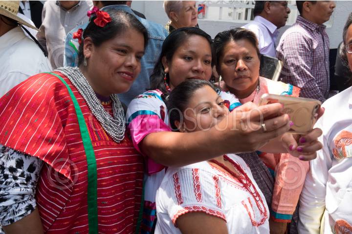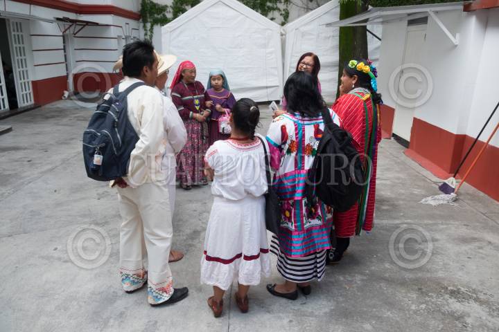CIUDAD DE MÉXICO, 12JULIO2018.- Desde temprana hora representantes de algunas comunidades Wixarikas llegaron a las inmediaciones de la casa de campaña de Andrés Manuel López Obrador, presidente electo. Hicieron la petición de interpretes de su lengua y el español para poder llevar a cabo los procesos jurídicos contra las mineras en sus comunidades. FOTO: ANDREA MURCIA /CUARTOSCURO.COM