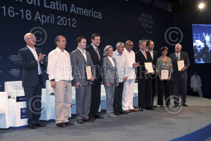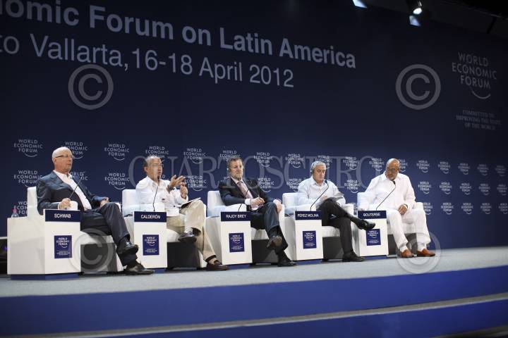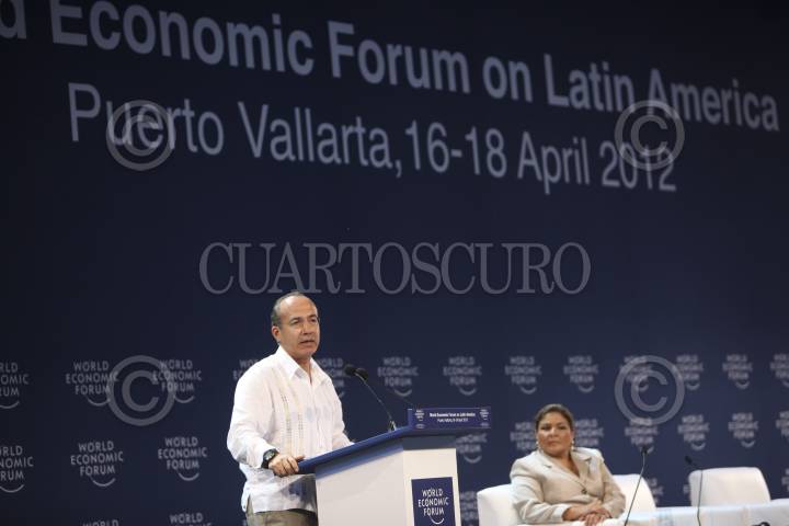 PUERTO VALLARTA, JALISCO, 17ABRIL2012.- Felipe Calderón Hinojosa, Presidente de México, durante la sesión plenaria del Fondo Económico Mundial. FOTO: ALFREDO GUERRERO /CUARTOSCURO.COM