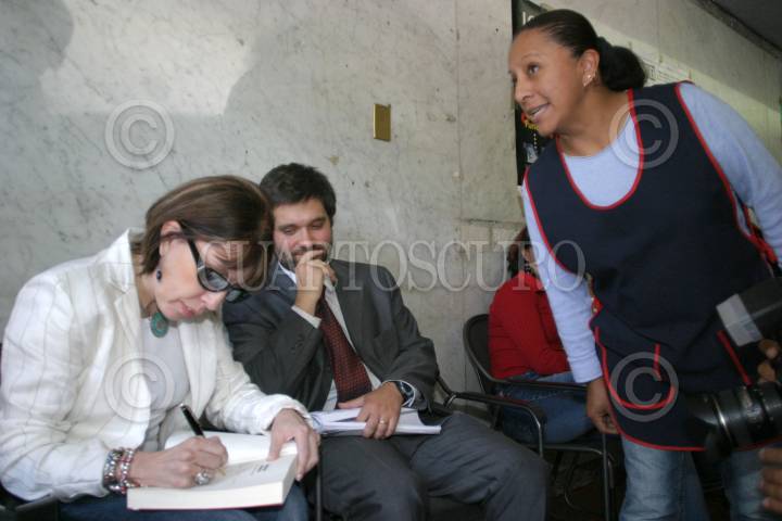 MEXICO, D.F. 20MAYO2005.- Olga Wornat, autora del libro Crónicas Malditas firma un ejemplar de su obra a una mujer que se le acercó cuando se retiraba del juzgado 12 civil a donde acudió para interporner una denuncia por presuntas amenazas de muerte. FOTO: Nelly Salas/CUARTOSCURO.COM