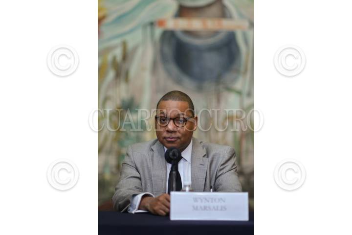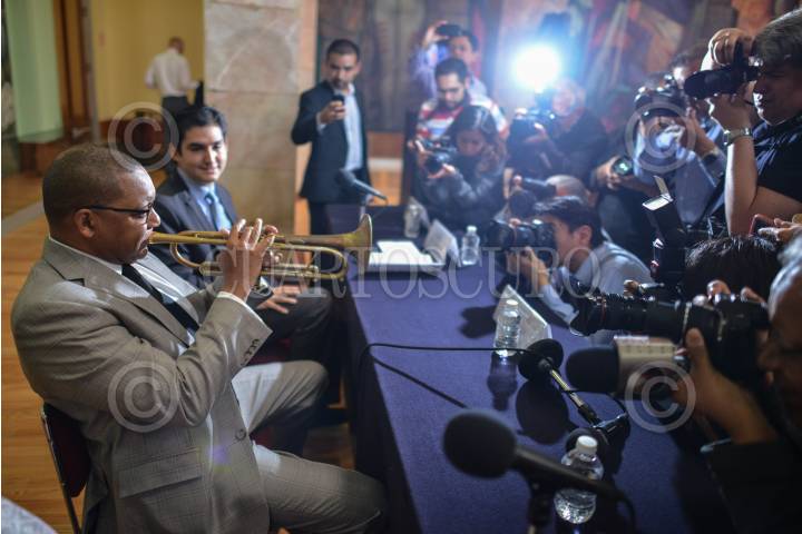 MÉXICO, D.F., 06MARZO2015.- En conferencia de prensa fue presentado Wynton Marsalis, trompetista, compositor y arreglista de Jazz, quien, acompañado de la orquesta Jazz at Lincoln Center, tendrá dos presentaciones en el Palacio de Bellas Artes, el próximo 7 y 8 de marzo y del 14 de marzo al 1 de abril tocarán en Venezuela, Perú, Chile, Uruguay, Argentina y Brasil. Marsalis, originario de Nueva Orleans, se formó en una familia jazzistica, es de los músicos con mayor impacto mediático y reconocido como de los más grandes trompetistas de la historia. Con una grabación de alrededor de 80m álbunes, ha sido ganador de nueve premios Grammy y un premio Pulitzer en Música en 1997. FOTO: ADOLFO VLADIMIR /CUARTOSCURO.COM