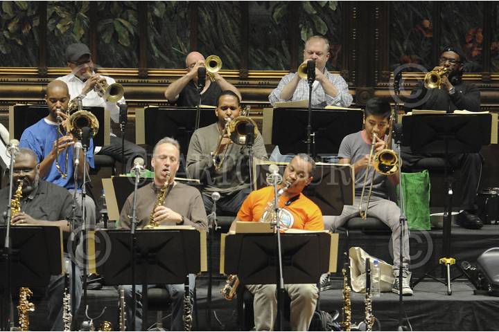 La Jazz at Lincoln Center Orchesta en compañía de Wynton Marsalis durante su concierto en el Auditorio Nacional.