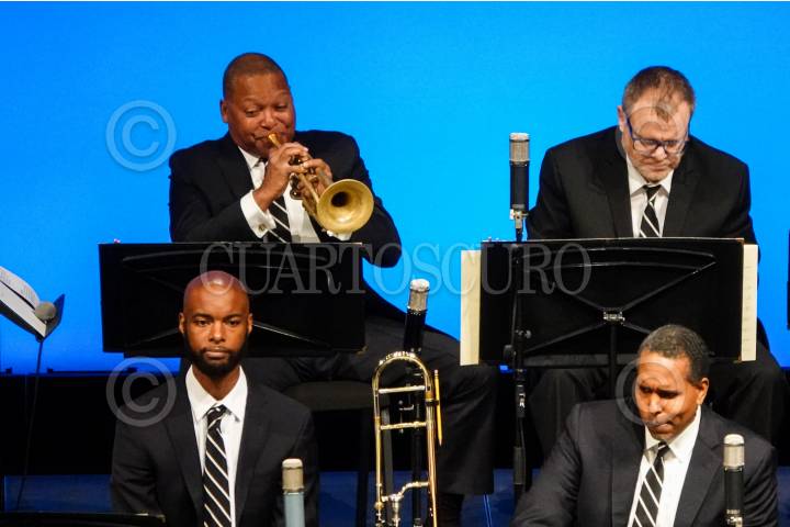 El trompetista Wynton Marsalis junto con la Jazz at Lincoln Center Orchesta durante su concierto en el Auditorio Nacional.