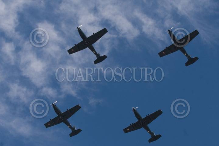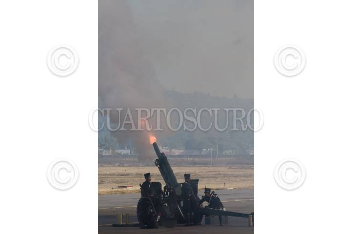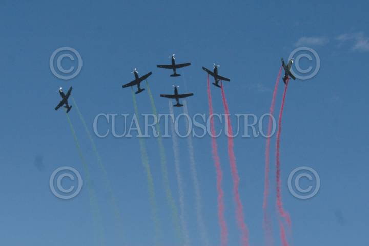 TECÁMAC, ESTADO DE MÉXICO, 10FEBRERO2010.- Elementos de la Fuerza Aérea Mexicana, realizaron una exhibición en el marco de la ceremonia conmemorativa del “XCV Aniversario de la Fuerza Aérea Mexicana”, en la base aérea de Santa Lucia, el Jefe Máximo de las Fuerza Armadas y sus secretarios presenciaron este espectáculo. FOTO: GUILLERMO PEREA/CUARTOSCURO.COM