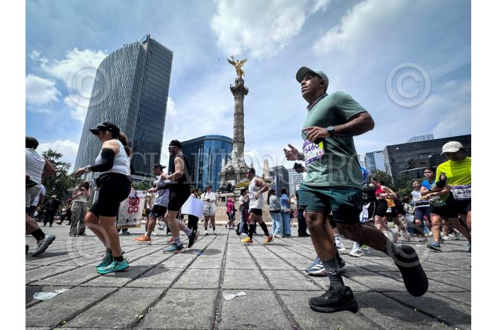 CIUDAD DE MÉXICO, 31AGOSTO2025.- Aspecto de corredores en el Ángel de la Independencia durante el Maratón de la Ciudad de México en su edición XLII del Estadio Olímpico Universitario y el cual recorre Polanco, Chapultepec, Condesa, Reforma con meta en la Plancha del Zócalo Capitalino. FOTO: ANDREA MURCIA /CUARTOSCURO.COM