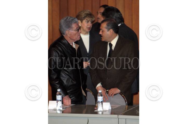 México, D.F. 31Enero 2004.- Leonardo Rodríguez Alcaine conversa conversa con el diputado Manlio Fabio Beltrones a su llegada a la XLV sesión ordinaria del PRI. FOTOS: Nelly Salas/CUARTOSCURO.COM
