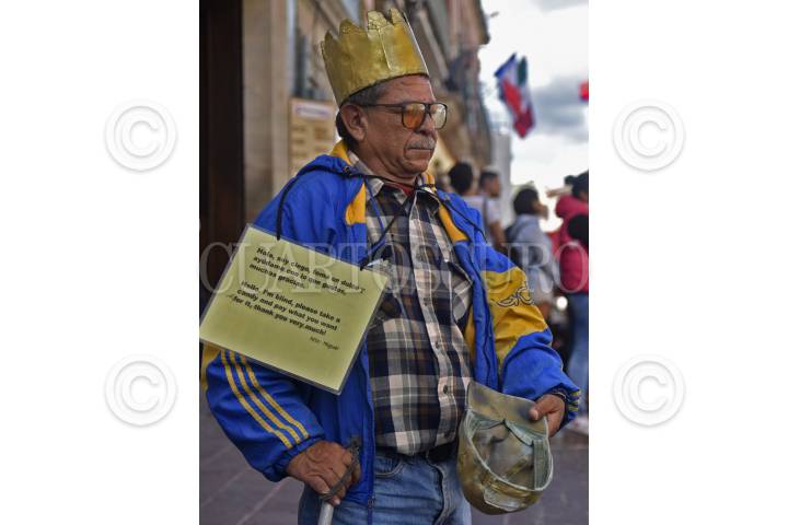 GUANAJUATO, GUANAJUATO, 14OCTUBRE2017.- Un señor con discapacidad visual intercambia dulces a cambio una moneda, esto en avenida González Obregón en el centro de Guanajuato. FOTO: MARIO JASSO /CUARTOSCURO.COM