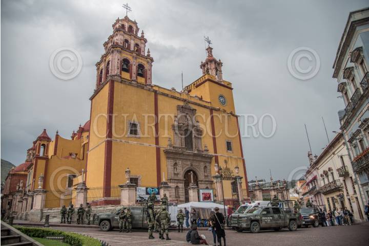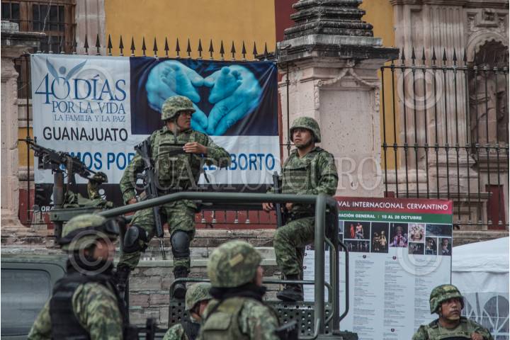GUANAJUATO, GUANAJUATO, 16OCTUBRE2018.- Como parte de las medidas para garantizar la seguridad de los visitantes y turistas durante el desarrollo de la edición XLVI del Festival Internacional Cervantino, autoridades de la entidad han desplegado operativos en diversos puntos de la entidad, en varias horas del día, contando con personal de la policía municipal, federal, y elementos del ejército mexicano. FOTO: MARIO JASSO /CUARTOSCURO.COM