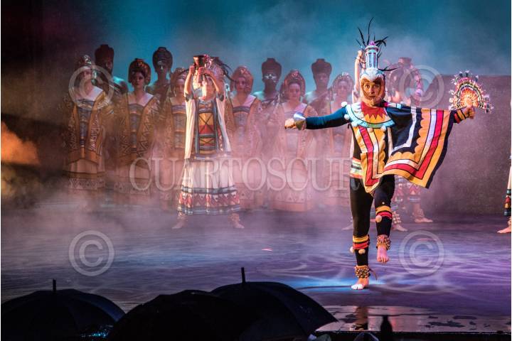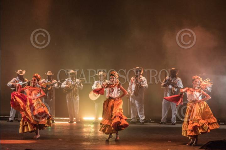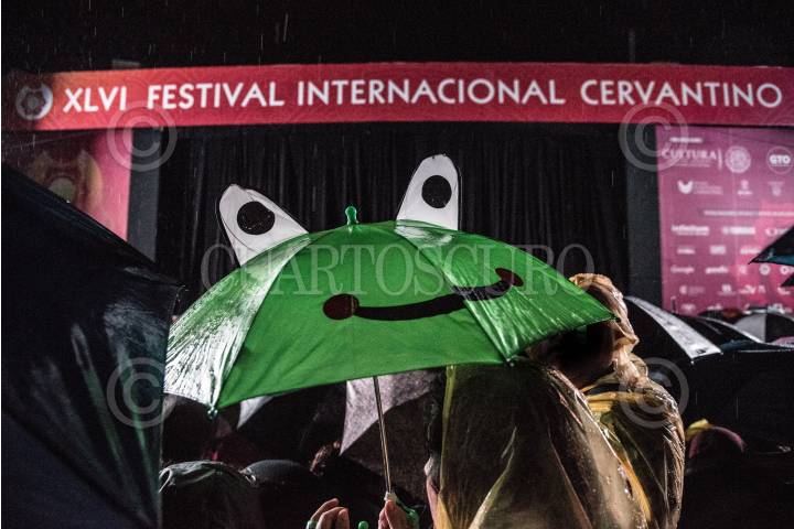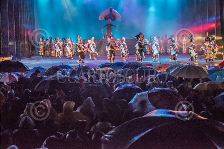 GUANAJUATO, GUANAJUATO, 16OCTUBRE2018.- Se llevo a cabo la presentación del Ballet Folklórico de México de Amalia Hernández, en la explanada de la Alhóndiga de Granaditas, como parte de las actividades de danza del XLVI Festival Internacional Cervantino. A pesar de la fuerte presencia de lluvia, cientos de visitantes asistieron a la presentación. FOTO: MARIO JASSO /CUARTOSCURO.COM