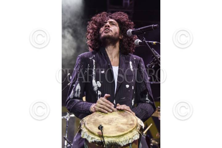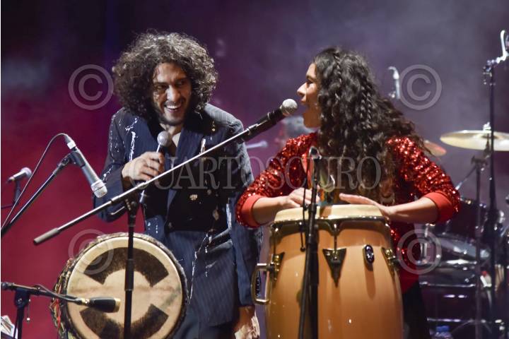 GUANAJUATO, GUANAJAUTO, 19OCTUBRE2018.- La banda colombiana “La chiva Gantiva” durante su presentación en la explanada de la Alhóndiga de Granaditas como parte de los conciertos que ofrece la edición XLVI del Festival Internacional Cervantino. FOTO: MARIO JASSO /CUARTOSCURO.COM