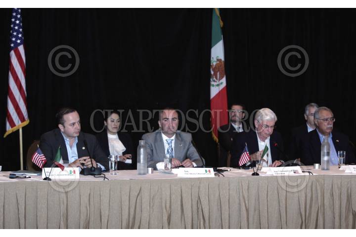 SEATTLE, ESTADOS UNIDOS, 06JUNIO2009.- El diputado Antonio Valladolid Rodríguez, presidente de la Comisión de Población, Fronteras y Asuntos Migratorios, y el senador Luis Alberto Villareal García, presidente de la Comisión de Relaciones Exteriores, América del Norte, durante la segunda jornada de la XLVIII Reunión Interparlamentaria México - Estados Unidos. FOTO: CUARTOSCURO.COM