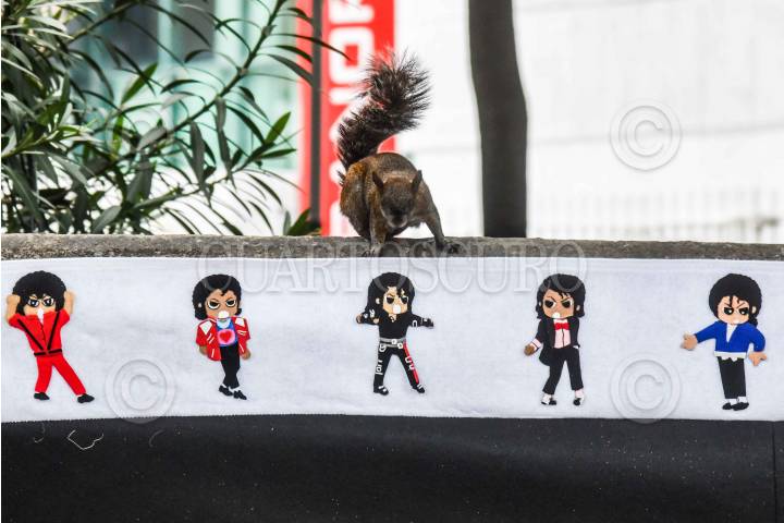 CIUDAD DE MÉXICO, 25JUNIO2024.- Una ardilla se mantiene quieta mientras se realiza un homenaje por parte de Integrantes de "Jackson City MX" para recordar a Michael Jackson "El rey del pop" en su quince aniversario luctuoso. FOTO: MARIO JASSO/CUARTOSCURO.COM