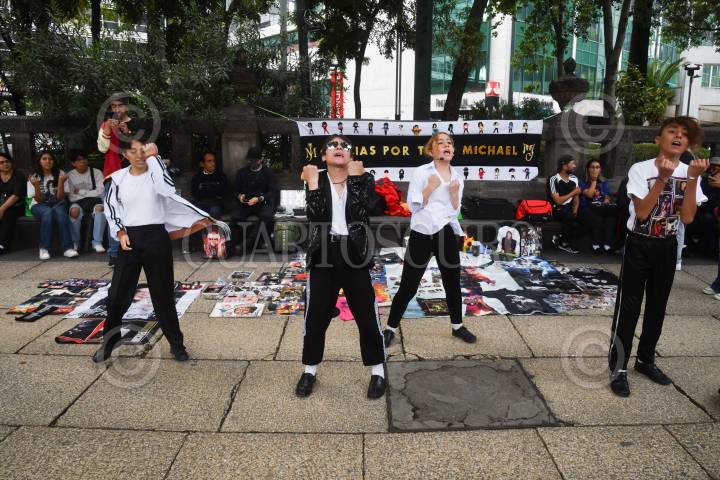 CIUDAD DE MÉXICO, 25JUNIO2024.- Integrantes de "Jackson City MX" se reunieron en las inmediaciones del Ángel de la Independencia para recordar a Michael Jackson "El rey del pop" en su quince aniversario luctuoso. FOTO: MARIO JASSO/CUARTOSCURO.COM