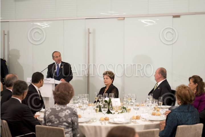 CADIZ, ESPAÑA, 16NOVIEMBRE2012.- Felipe Calderón Hinojosa, Presidencia de la República, cenó con los Reyes de España, invitados por el Rey Juan Carlos I, en el marco de la XXII Cumbre Iberoamericana de Jefes de Estado y de Gobierno. FOTO: ALBERTO LEMUS /CUARTOSCURO.COM