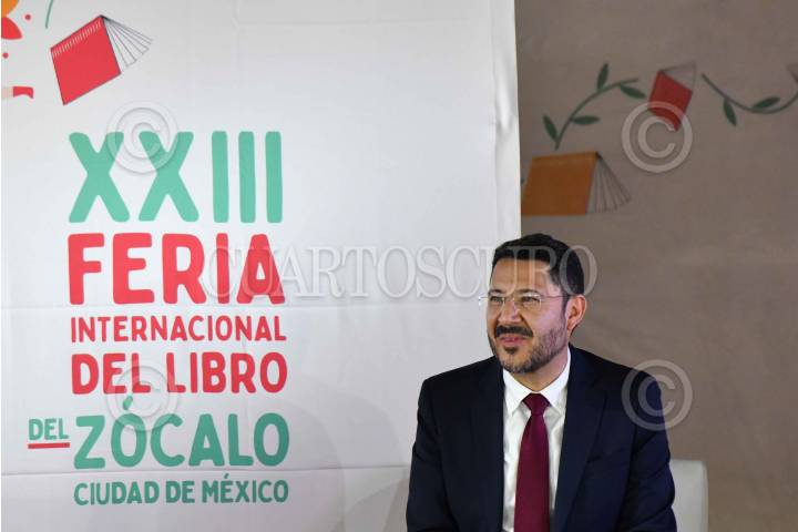 CIUDAD DE MÉXICO, 13OCTUBRE2023.- Martí Batres, jefe de gobierno de la Ciudad de México; Claudia Curiel de Icaza, secretaria de Cultura de la capital, y Paloma Sainz Tejero, coordinadora de programa en Para Leer en Libertad, encabezaron la inauguración de la XXIII Feria Internacional del Libro del Zócalo. FOTO: MARIO JASSO/CUARTOSCURO.COM