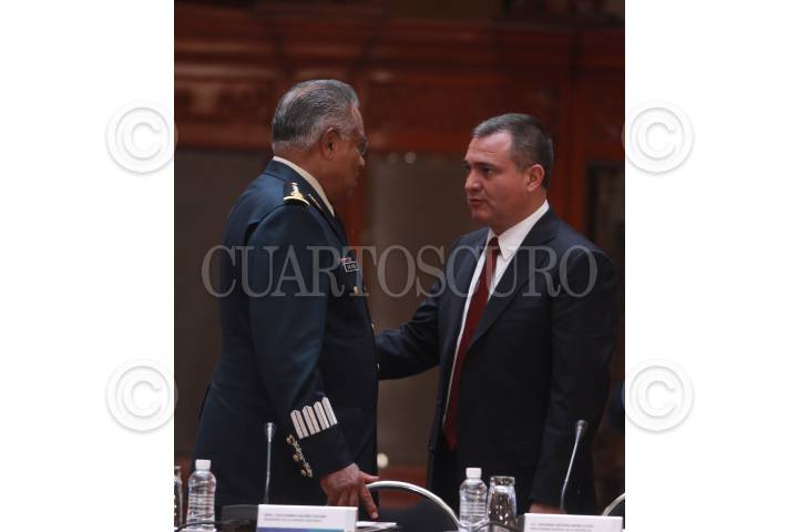 MÉXICO, D.F., 02JUNIO2009.- Genario García Luna, Secretario de Seguridad Pública y José Luis Soberanes, presidente de la Comisión Nacional de los Derechos Humanos, durante la XXVI sesión del Consejo Nacional de Seguridad Pública en Palacio Nacional, encabezada por Felipe Calderón Hinojosa, Presidente de México. FOTO: SÁSHENKA GUTIÉRREZ/CUARTOSCURO.COM
