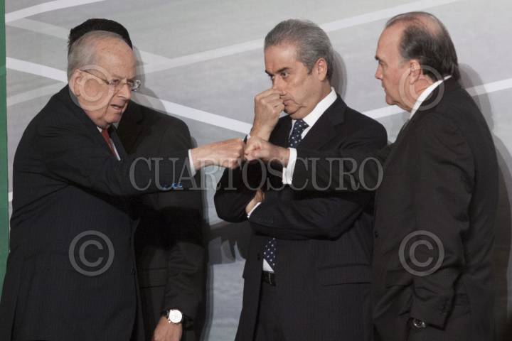 MÉXICO, D.F., 06NOVIEMBRE2013.- Claudio X González Guajardo, presidente de Mexicanos Primero, saluda a Jorge Dávila Flores, presidente de la CONCANACO, en la inauguración de la 30 Asamblea General Ordinaria del Consejo Nacional Agropecuario. FOTO: IVÁN STEPHENS /CUARTOSCURO.COM