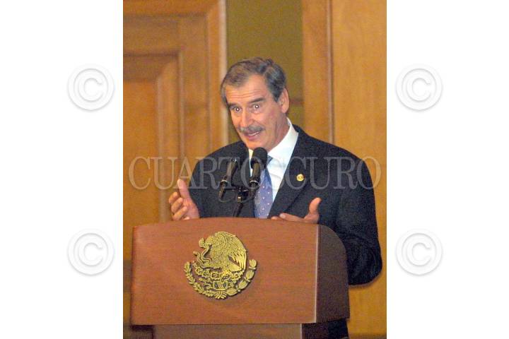 MONTERREY, NUEVO LEON, 26NOVIEMBRE2004.- El presidente de México, Vicente Fox durante su discurso a los empresarios asistentes a la XXXII Convención Nacional IMEF 2004, evento realizado en el salón Nuevo León del Hotel Crowne Plaza de esta ciudad. FOTO: Jorge López/CUARTOSCURO.COM