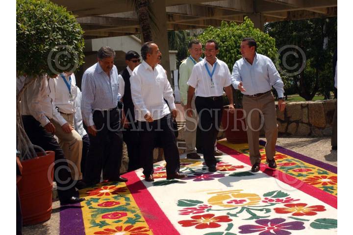 ACAPULCO, GUERRERO, 27MARZO2007.- Rodolfo Elizondo, Secretario de Turismo, Felipe Calderón Hinojosa, Presidente de la República y Zeferino Terreblanca, gobernador de Guerrero, durante la clausura del XXXII Tianguis Turístico en el teatro Juan Luis Alarcon del Centro de Convenciones. FOTO: ARIEL GUTIERREZ/CUARTOSCURO.COM