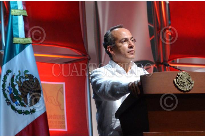 ACAPULCO, GUERRERO, 27MARZO2007.- Felipe Calderón Hinojosa, Presidente de la República, durante la clausura del XXXII Tianguis Turístico en el teatro Juan Luis Alarcon del Centro de Convenciones. FOTO: ARIEL GUTIERREZ/CUARTOSCURO.COM