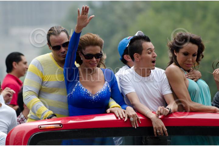 MÉXICO, D.F., 25JUNIO2011.- Lucía Méndez, actriz; madrina de la XXXIII Marcha del Orgullo Gay que se realizó ante la asistencia de miles de personas de la comunidad Lésbico, Gay, Bisexual, Travesti, Transexual, Transgénero e Intersexual (LGBTTTI) que se desarrollo del Ángel de la Independencia al Zócalo capitalino. FOTO: MISAEL VALTIERRA/CUARTOSCURO.COM