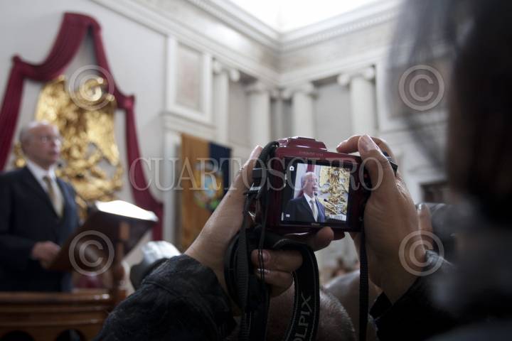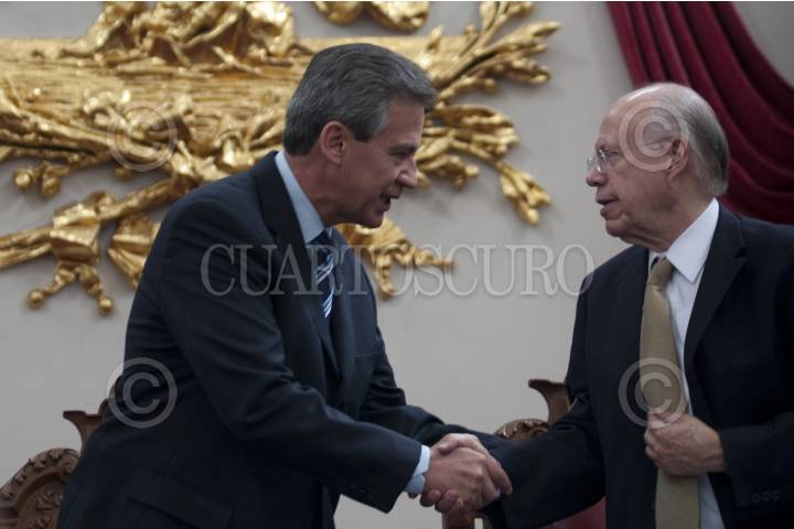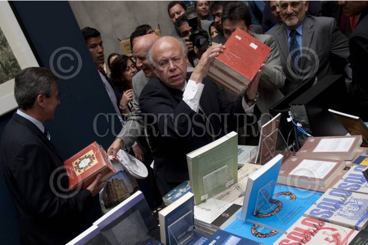 MÉXICO, D.F. 22FEBRERO2012.- José Narro Robles Rector de la UNAM y Héctor López Santillana Secretario de Gobierno del Estado de Guanajuato, encabezo la ceremonia de inauguración de la XXXIII Feria Internacional del Libro del Palacio de Minería, en la que realizó un recorrido al termino de esta. FOTO: GUILLERMO PEREA /CUARTOSCURO.COM