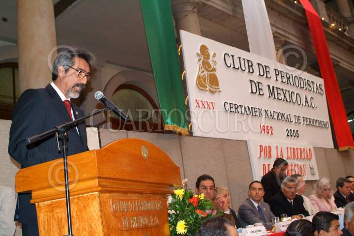 MEXICO, D.F., 06DICIEMBRE2005.- Durante la entrega de premios de XXXV Certamen Nacional de Periodismo, organizado por el Club de Periodistas de México, La Fundación "Antonio Sáenz de Miera" y el Instituto Politécnico Nacional, el Director General del IPN, Enrique Villa Rivera, hizo un llamado a los medios masivos de comunicación del país ha hacer una defensa de las Instituciones de Educación Superior porque el papel de la libertad de expresión y de la educación representan la via para fortalecer la democracia y el desarrollo de México. Foto:IPN/CUARTOSCURO.COM