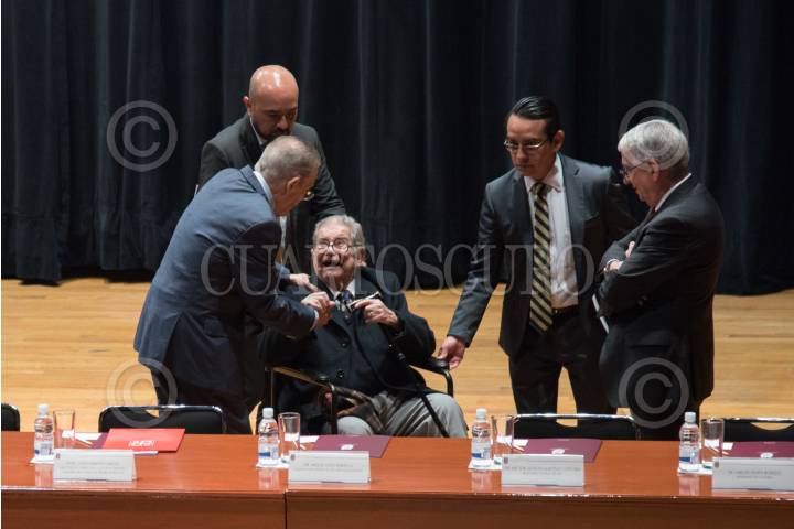 CIUDAD DE MÉXICO, 31AGOSTO2018.- El doctor Miguel León Portilla, durante la ceremonia de inauguración de la XXXVII Feria Internacional del Libro del IPN. Miguel León Portilla recibió el Premio FIL-IPN en la categoría humanística, mientras que Pablo Rodomó en la categoría científica, como reconocimiento a sus destacadas trayectorias. FOTO: MARIO JASSO /CUARTOSCURO.COM