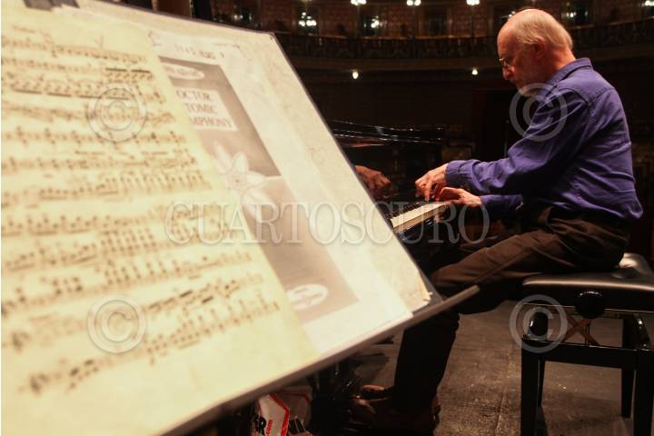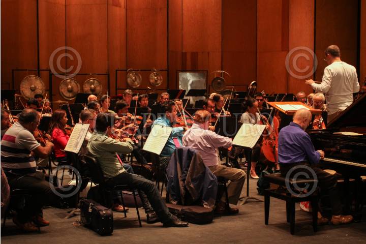 GUANAJUATO, GUANAJUATO, 21OCTUBRE2015.- La orquesta Sinfonica de Xalapa ensaya en el teatro Principal junto con Alexei Lubimov para su presentación esta noche del estreno de Sinfonía Doctor Atomic basada en la opera de John Adams, dentro del marco del Festival Internacional Cervantino. FOTO: ISABEL MATEOS /CUARTOSCURO.COM