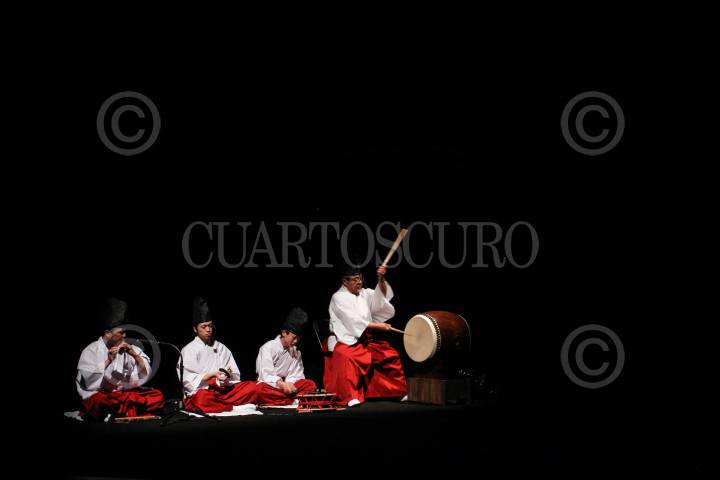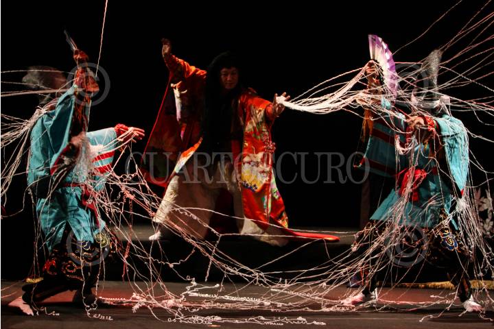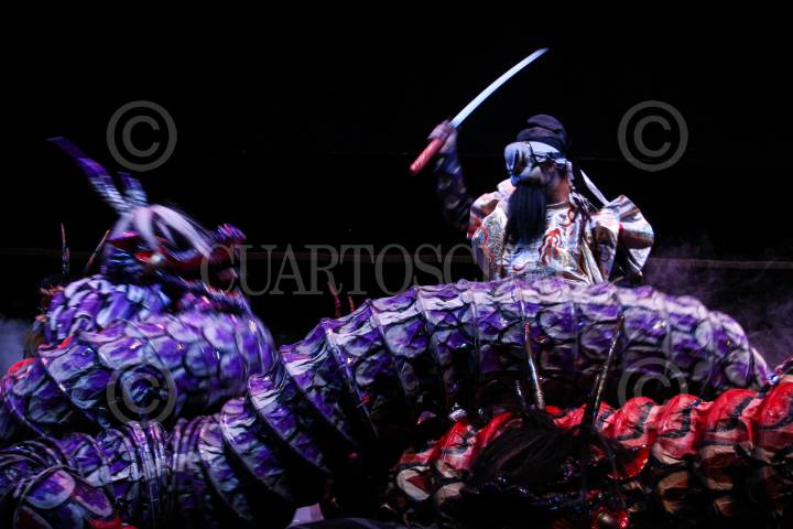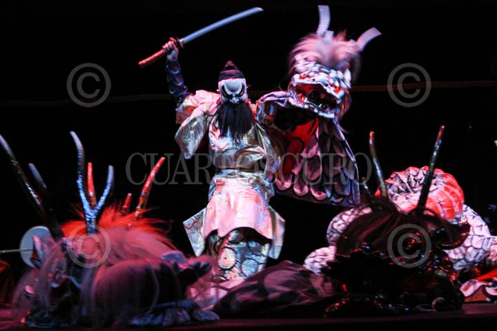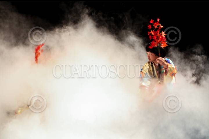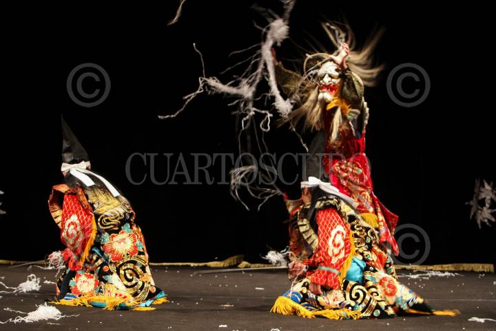 GUANAJUATO, GUANAJUATO, 21OCTUBRE2015.- El Kagura (danza tradicional japonesa) tiene mas de dos siglos de existencia, es una danza destinada a agradecer a los dioses las buenas cosechas. Dentro de la 43 edición del Festival Internacional Cervantino, la compañía Hiroshima Kagura Dan, presentó Momiji Gari y Yamata No Orochi en el Teatro Principal. FOTO: ISABEL MATEOS /CUARTOSCURO.COM