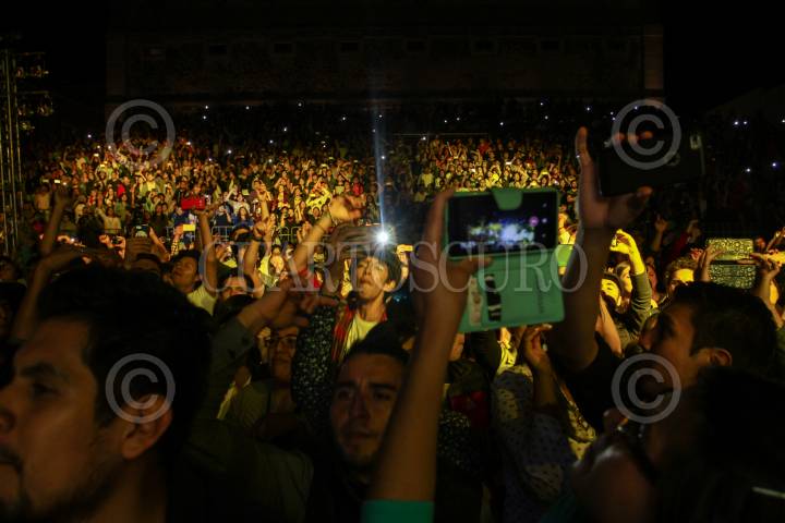 GUANAJUATO, GUANAJUATO, 21OCTUBRE2015.- Como parte de los eventos la 43 edición del Festival Internacional Cervantino, A Band Of Bitches ofreció un concierto lleno de energia y ritmos que van desde el punk hasta el mambo. Jonás –ex Plastilina Mosh– y su banda se encargaron de encender los ánimos de cientos de espectadores en la explanada de la Alhóndiga de Granaditas. FOTO: ISABEL MATEOS /CUARTOSCURO.COM