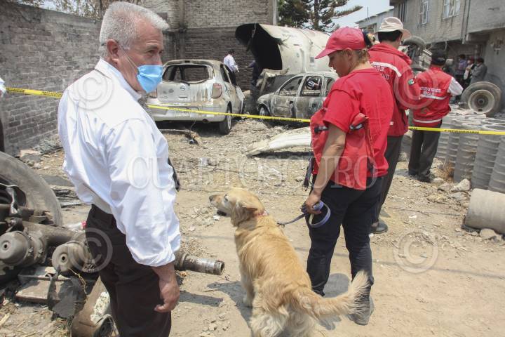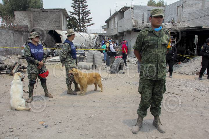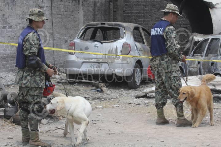 ECATEPEC ESTADO DE MÉXICO., 08MAYO2013.- Elementos de la PGR, SEMAR, SEDENA y PGJEM, realizan los peritajes en el lugar donde explotó una pipa de gas el día de ayer en San Pedro Xalostoc y dejo como saldo 23 personas sin vida y mas de cincuenta lesionados. FOTO: SAÚL LÓPEZ /CUARTOSCURO.COM