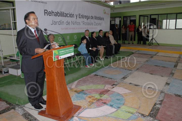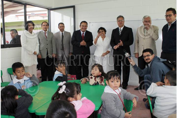 ECATEPEC, ESTADO DE MÉXICO, 13MAYO2013.- A seis días de los hechos ocurridos en el kilómetro 14 de la Autopista México-Pachuca, en San Pedro Xalostoc, el presidente municipal Pablo Bedolla reinauguró el Jardín de Niños “Rosaura Zapata”, el cual resultó afectado por la explosión de una pipa de gas. FOTO: CUARTOSCURO.COM