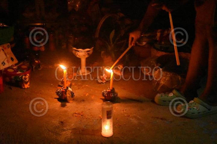 XOCHIATIPAN, HIDALGO, 02NOVIEMBRE2024.- Las ceras o velas son uno de los elementos indispensables en la ofrenda durante la celebración del Xantolo, suelen colocarse sobre estos figurines de cerámica para la ocasión y su luz funciona para guiar al alma en su visita. FOTO: SANDRA MARTÍNEZ/CUARTOSCURO.COM