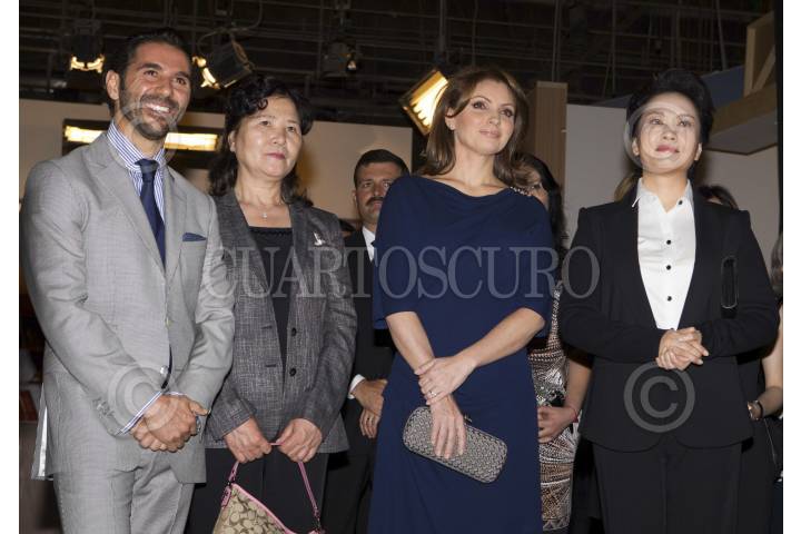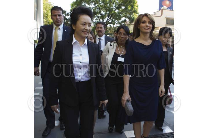 MÉXICO, D.F., 05JUNIO2013.- Angélica Rivera de Peña, esposa del Presidente de México, Enrique Peña Nieto junto a Peng liyuan, Esposa del Presidente de la República Popular China, Xi Jinping durante el recorrido que realizaron por las Instalaciones de Televisa. FOTO: TELEVISA /CUARTOSCURO.COM