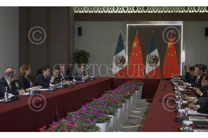 ANTALYA, REPÚBLICA DE TURQUÍA, 16NOVIEMBRE2015.- El Presidente Enrique Peña Nieto, y su homólogo de la República Popular China, Xi Jinping, coincidieron hoy en que la relación bilateral entre ambos países ha tenido importantes avances en la construcción de una agenda de trabajo más profunda, con mayores intercambios comerciales y de inversión. FOTO: PRESIDENCIA /CUARTOSCURO.COM