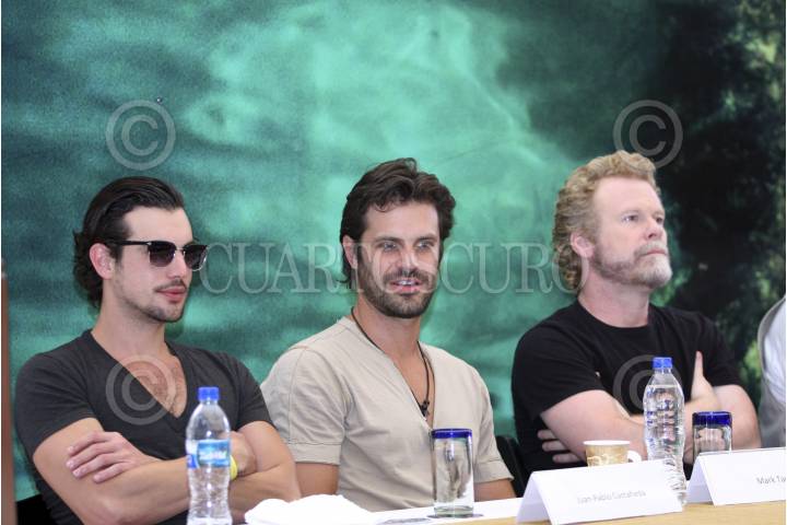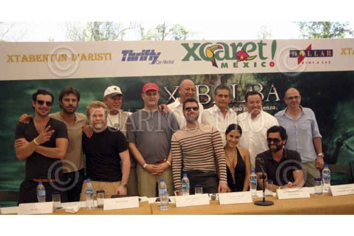 XCARET, QUINTANA ROO, 04MAYO2013.- Los actores Carla Ortiz, Markc Tacher, Juan Pablo Castañeda, Bernardo Peña junto con el director Joaquín Rodríguez y el productor Carlos Calderón ofrecieron una conferencia de prensa para dar detalles de la película Xibalba, la cual es un largometraje con las características propias de las películas de la industria de Hollywood y cuenta con un reparto de gran renombre, predominantemente Mexicano, soportado por actores Latinos y de Norte América. Los diálogos de la película mezclan el español e ingles, creando así una película apropiada para los mercados internacionales. FOTO: CSPHOTO /CUARTOSCURO.COM