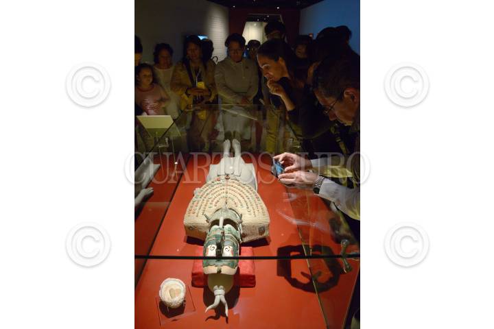 CIUDAD DE MÉXICO, 31JULIO2018.- El Museo del Templo Mayor alojará durante mes y medio el ajuar funerario de un personaje fascinante: la Reina Roja, cuyos restos mortales fueron descubiertos la madrugada del 1 de junio de 1994 en Palenque, Chiapas. Por vez primera, se recreó el entierro de Tz’ak-b’u Ajaw, consorte de Pakal el Grande, el gobernante más importante de esa ciudad maya. FOTO: INAH /CUARTOSCURO.COM