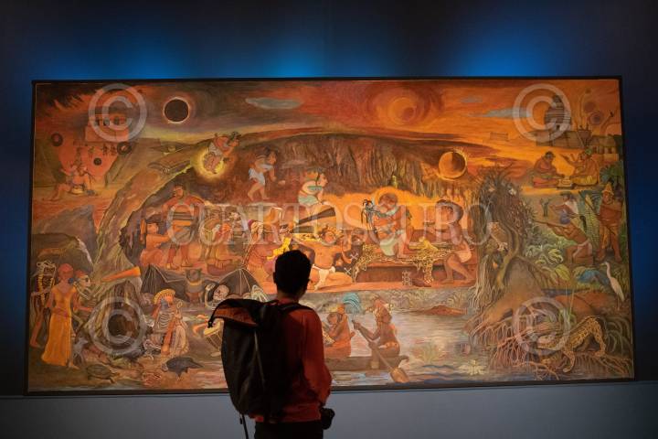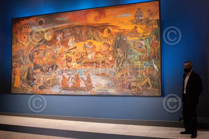 CIUDAD DE MÉXICO, 15AGOSTO2024. La pintura mural “Xibalbá, el inframundo de los mayas”, de la artista plástica ya fallecida Rina Lazo se integra a la colección permanente del Área de Murales del Palacio de Bellas. FOTO: EDGAR NEGRETE LIRA/CUARTOSCURO.COM