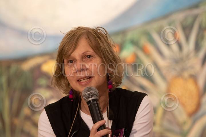 CIUDAD DE MÉXICO, 15AGOSTO2024. Rina García Lazo hija de la pintora Rina Lazo acudió a la ceremonia en que se integro la pintura mural “Xibalbá, el inframundo de los mayas”, a la colección permanente del Área de Murales del Palacio de Bellas. FOTO: EDGAR NEGRETE LIRA/CUARTOSCURO.COM