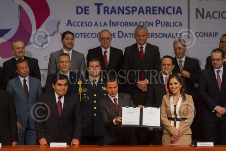 MÉXICO, D.F., 23JUNIO2015.- Miguel Barbosa, presidente de la mesa directiva del Senado, Enrique Peña Nieto, Presidente de México y Ximena Puente de la Mora, comisionada presidente del Instituto de Transparencia, Acceso a la Información y Protección de Datos Personales, durante la instalación del Consejo del Sistema Nacional de Transparencia, Acceso a la Información y Protección de Datos Personales, en evento realizado en el WTC. FOTO: MOISÉS PABLO /CUARTOSCURO.COM