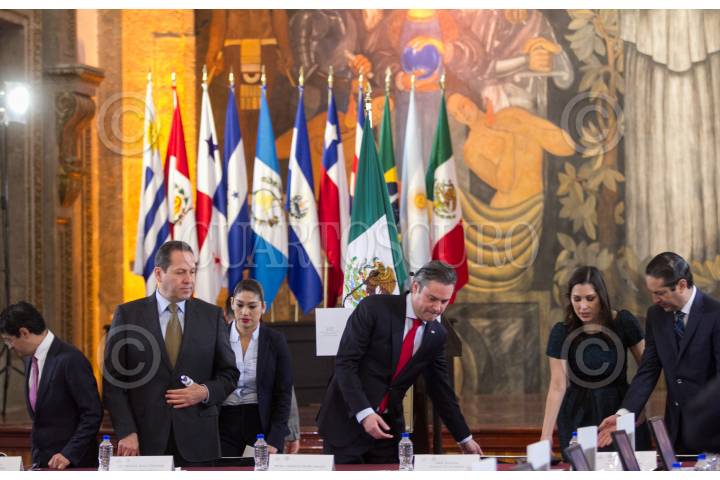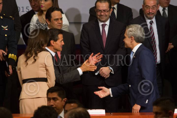 MÉXICO, D.F., 23JUNIO2015.- Miguel Barbosa, presidente de la mesa directiva del Senado, Enrique Peña Nieto, Presidente de México, Ximena Puente de la Mora, comisionada presidente del Instituto de Transparencia, Acceso a la Información y Protección de Datos Personales y Miguel Ángel Mancera, Jefe de Gobierno, durante la instalación del Consejo del Sistema Nacional de Transparencia, Acceso a la Información y Protección de Datos Personales, en evento realizado en el WTC. FOTO: MOISÉS PABLO /CUARTOSCURO.COM