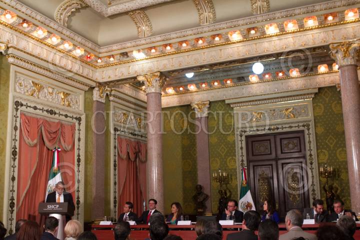CIUDAD DE MÉXICO, 18FEBRERO2016.- Luis Robles Miaja, presidente de la Asociación de Bancos de México, Luis Videgaray, secretario de Hacienda y Crédito Público, Ximena Puente de la Mora, comisionada presidenta del INAI, y Lorenzo Cordóva, consejero presidente del INE, firmaron las bases de colaboración para inhibir la suplantación de identidad a través del sistema financiero en México, que se realizó en el Palacio Nacional. FOTO: MOISÉS PABLO /CUARTOSCURO.COM