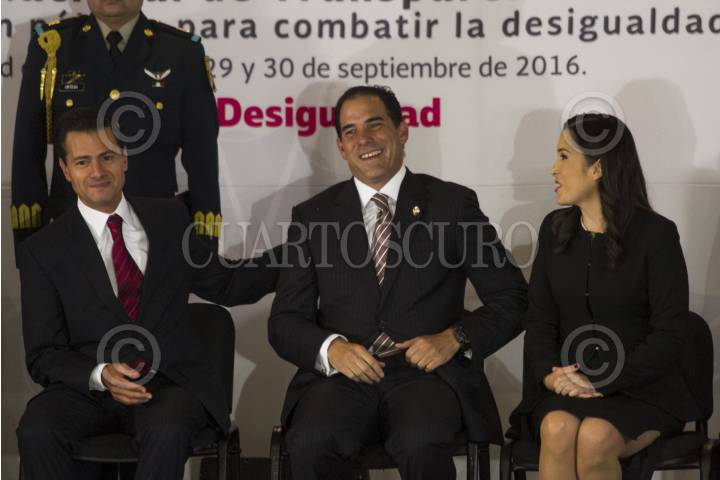 CIUDAD DE MÉXICO, 28SEPTIEMBRE2016.- Enrique Peña Nieto, Presidente de México; Pablo Escudero, presidente del Senado, y Ximena Puente de la Mora, presidenta del INAI, durante la semana nacional de transparencia 2016, organizado por el Instituto Nacional de Transparencia, Acceso a la Información y Protección de Datos Personales (INAI). FOTO: MOISÉS PABLO /CUARTOSCURO.COM