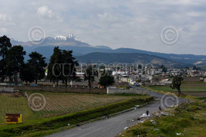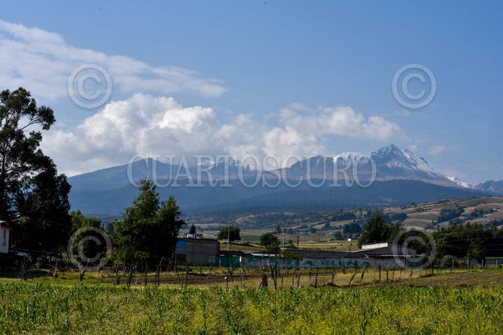 Panorámica del volcán Xinantecátl o nevado de Toluca desde la comunidad de San José el Totoc.