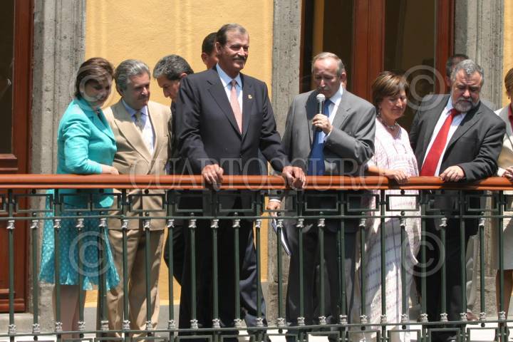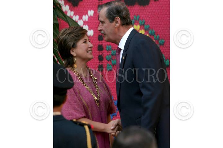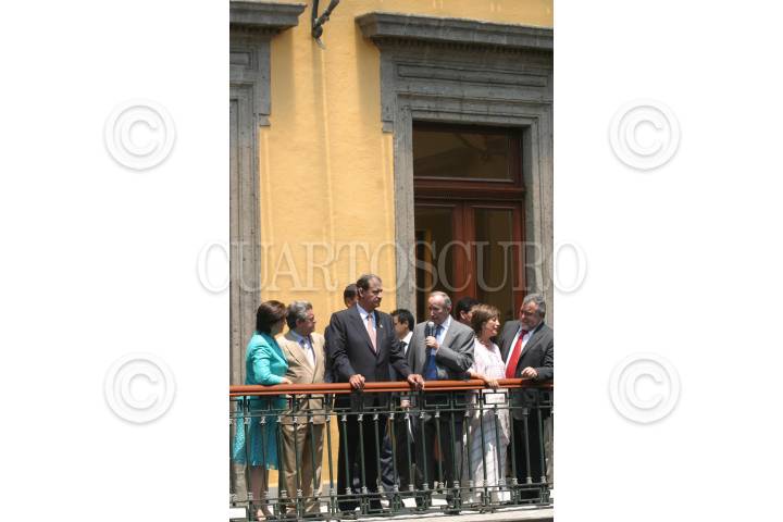 MEXICO, D.F., 25ABRIl2006.- Vicente Fox, presidente de la República, visitó la ueva sede del Instituto nacional de Antropología e Historia anteriormente Antiguo Palacio del Marques de Apartado, ubicado en la calle de Justo Sierra y Argentina. Lo acompañaron Sarí Bermúdez, Xochilt Galvez, directora general de la Comisión Nacional para el Desarrollo de los Pueblos Indigenas y Alejandro Encinas, Jefe de Gobierno. FOTO: Moisés Pablo/CUARTOSCURO.COM