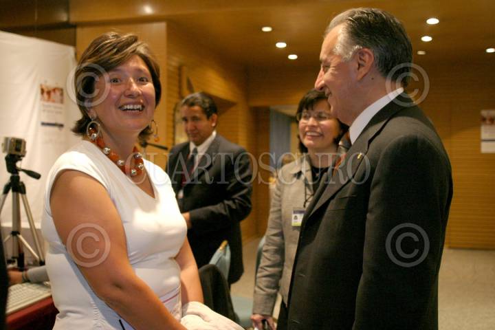 MEXICO, D.F., 05ABRIL2006.- Xochilt Galvez Ruíz, Directora General de la Comisión Nacional para el Desarrollo de los Pueblos Indgenas y Vicente Fox, Presidente de la República, durante el informe de la Segunda Semana Indigena en el patio central del Palacio Nacional. FOTO: Moisés Pablo/CUARTOSCURO.COM