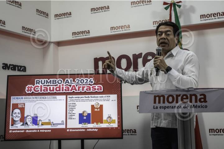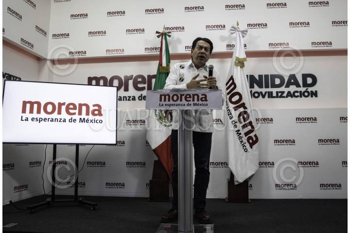 CIUDAD DE MÉXICO, 10OCTUBRE2023.- Mario Delgado ofreció conferencia en la cede de Morena para dar detalles sobre el avance de recorridos de Claudia Sheinbaum así como la alza en encuestas contra la candidata Xóchitl Gálvez. FOTO: ANDREA MURCIA /CUARTOSCURO.COM