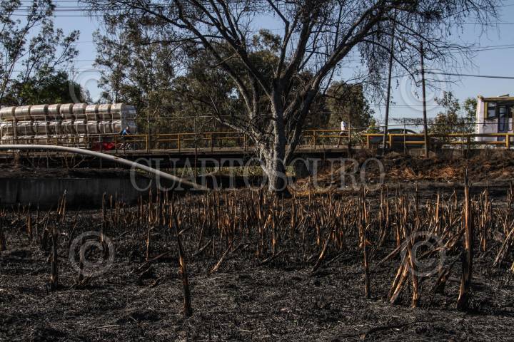 CIUDAD DE MÉXICO, 21FEBRERO2019.- El incendio del pasado miércoles que consumió 40 hectáreas de pastizales en el Parque Ecológico de Xochimilco y de la Ciénega Grand, que presuntamente se originó por las altas temperaturas al rededor de las 15:00 y fue controlado por bomberos y personal de protección civil al rededor de las 18:00 pm. Después de lo ocurrido, la zona se encuentra abandonada y sin ninguna autoridad al resguardo del lugar para la supervisión del terreno. FOTO: ROGELIO MORALES /CUARTOSCURO.COM
